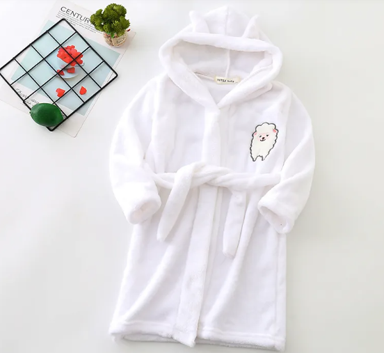 The Flannel Bathrobe Boys’ Home Wear With Hood offers soft warmth, a cozy hood, and breathable flannel fabric—perfect for winter baths, bedtime, and relaxing at home.