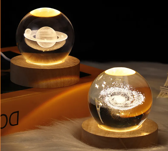 The crystal ball features advanced 3D laser engraving technology, creating a lifelike galaxy, planet, or moon effect inside the glass. When the LED light is turned on, the design appears to float beautifully within the crystal, offering a mesmerizing visual experience—especially in dim or dark environments.