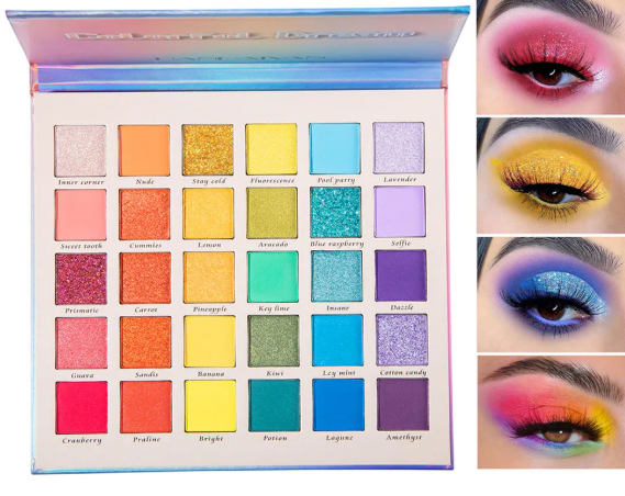 • Pearlescent, Matte & Glitter Shades – All-in-one versatile palette