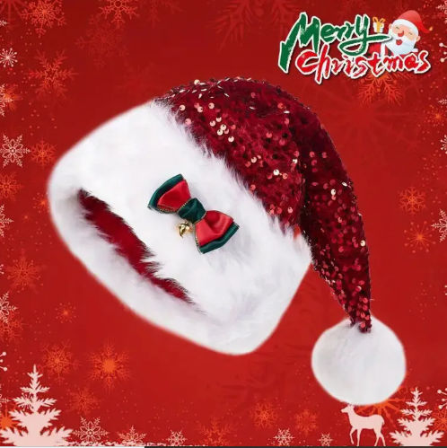 The highlight of this festive hat is its shimmering red sequins, which reflect light beautifully, creating a sparkling Christmas glow that stands out from traditional Santa hats. Paired with an elegant bow design, the hat combines classic Christmas charm with modern fashion, allowing you to express your festive spirit in a stylish and eye-catching way. The sequins are securely stitched to ensure they stay in place even with frequent use throughout the holiday season.