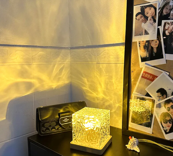 Transform your living space into a calming and visually stunning environment with the LED Water Ripple Ambient Night Light USB Rotating Projection Crystal Table Lamp. Designed to project beautiful water ripple light patterns, this modern crystal lamp creates a relaxing atmosphere perfect for bedrooms, living rooms, cafés, and special events.