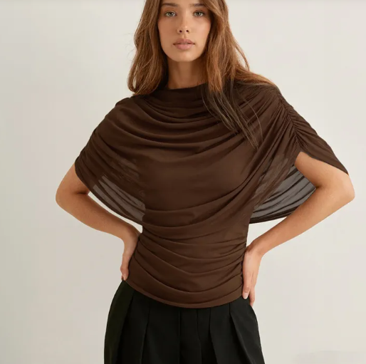 Unlike standard blouses, the scarf neckline blouse features a built-in drape or tie detail that mimics a silk scarf, creating a graceful frame around the neck and collarbone. It offers a polished, high-fashion look without needing extra accessories.