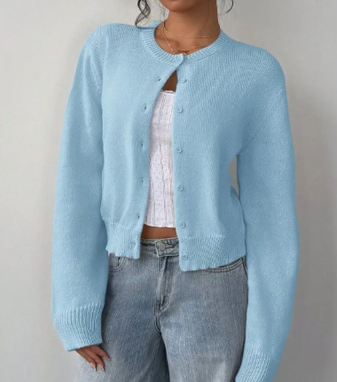 The slim-fit structure enhances your natural curves without feeling tight, while the short length adds a chic, youthful, and feminine touch. Whether you’re styling it over a dress, layering it with a tank top, or pairing it with high-waisted jeans, this knitted cardigan adapts perfectly to every fashion mood. The long sleeves provide warmth and coverage, making it ideal for autumn, winter, and cool spring days.