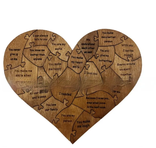 The Reasons Why I Love You Wooden Heart Puzzle is a romantic, heart-shaped wooden jigsaw puzzle designed to express love in a meaningful way. Perfect for anniversaries, Valentine’s Day, and birthdays.